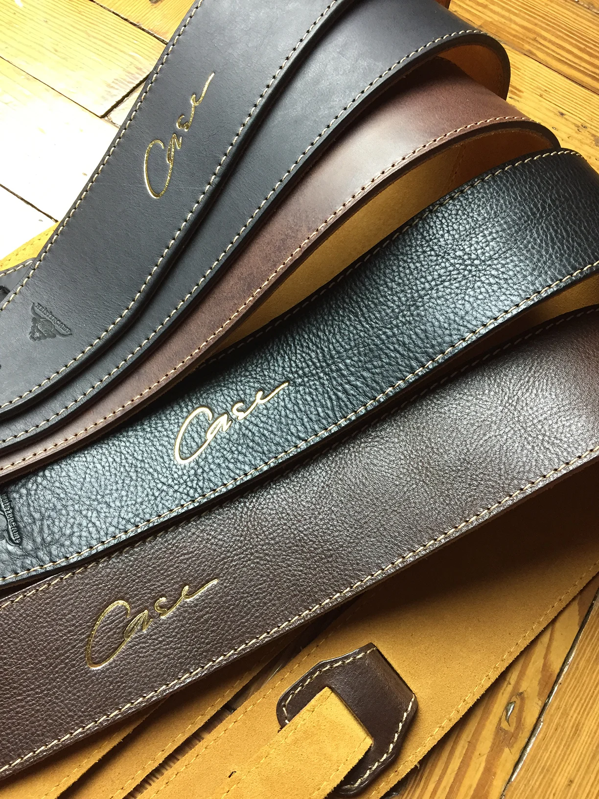 Each strap is lovingly handcrafted in black or brown full-grain leather with a ochre suede lining and is 2.5'' wide.